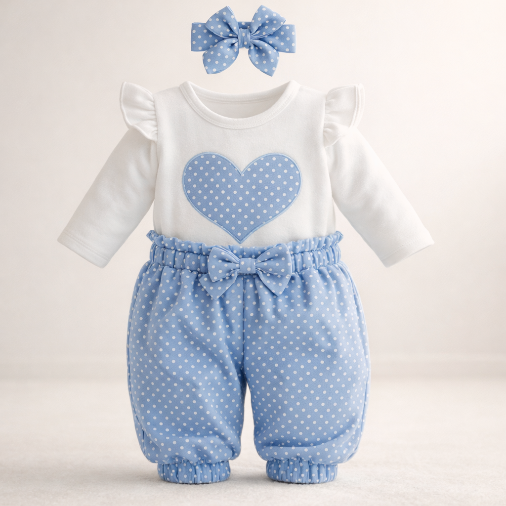 סט לב לבנות עם סרט פפיון – אהבה וסטייל בכל פריט!