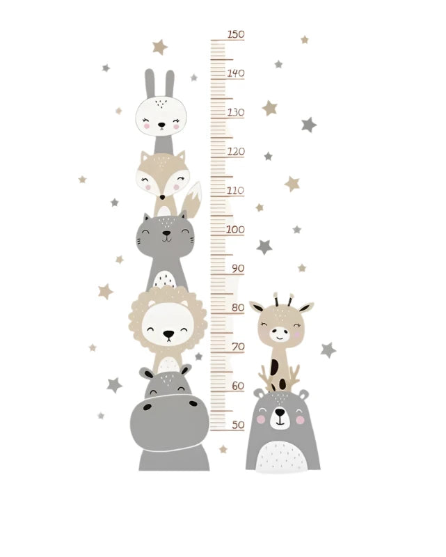 מדבקות חיות וכוכבים ומדבקת סרט מדידה לגבוה וסימון קצב הגדילה של התינוק שלכם, מדבקות איכותיות ומהממות שיכולות להשתלב בכל חדר
