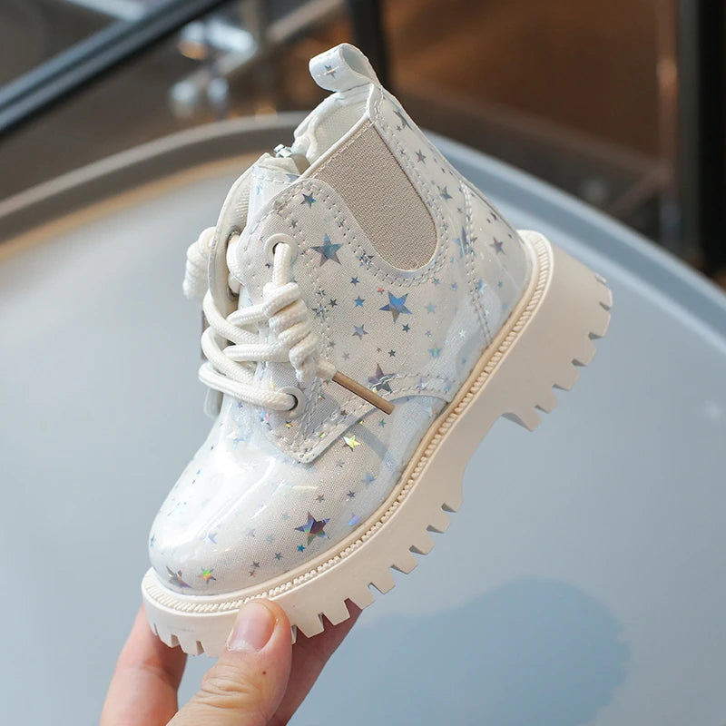 מגפי חורף שיא הסטייל, איכותיות ואופנתיות עם כוכבים מנצנצים, שומרות על ביטחון כף הרגל לילדות